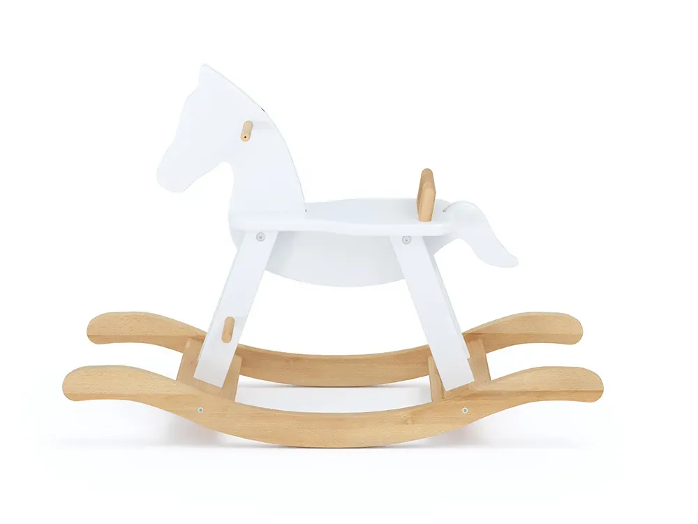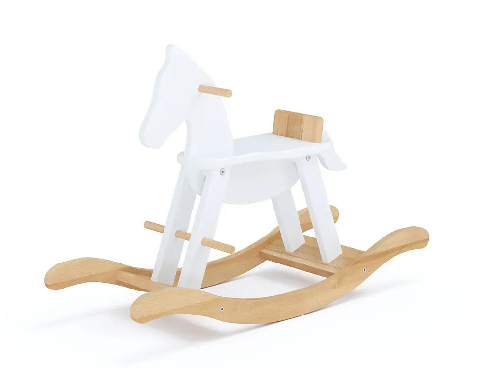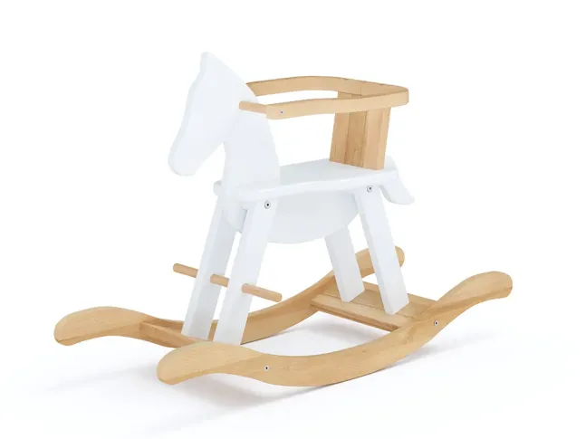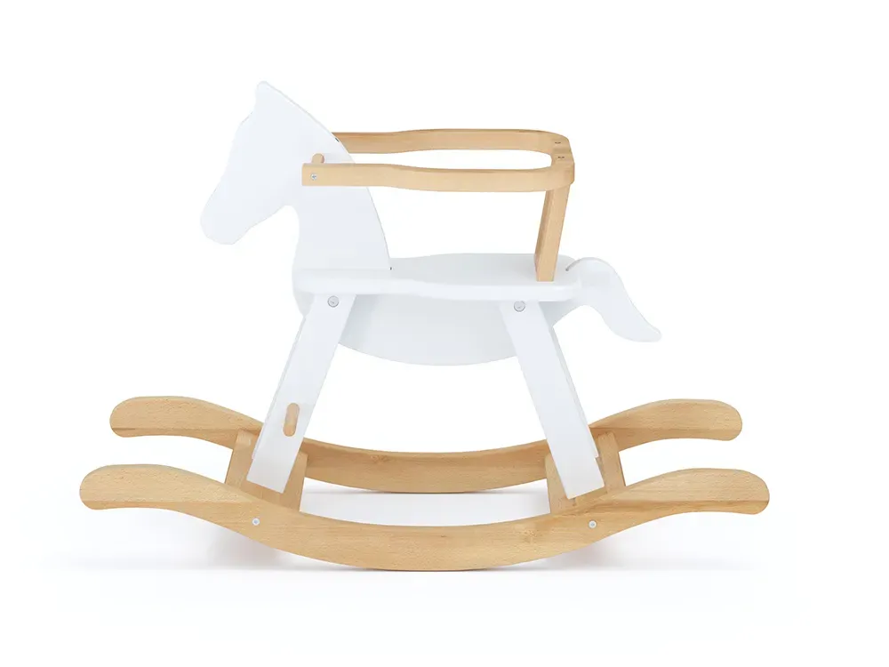 Лошадка-качалка Эней натурального\белого цвета, цельный бук, покрытие льняное масло (общий вид)