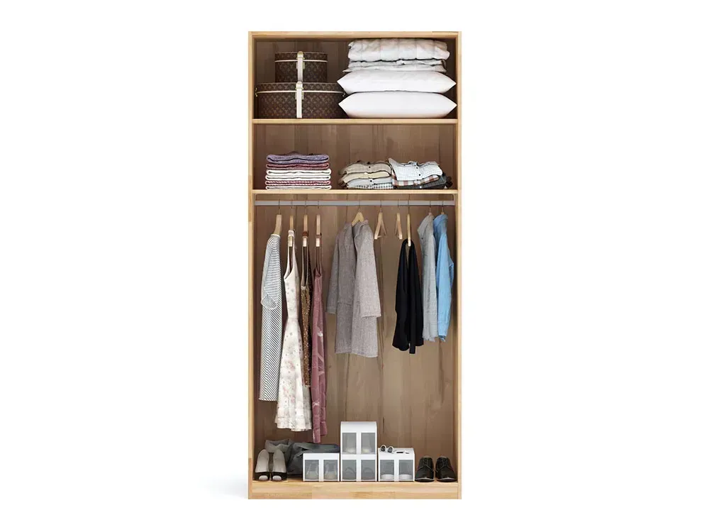 Модель не имеет дверей, поэтому идеально подойдёт тем, кто хочет держать всё на виду. В стандартную комплектацию входит штанга для вешалок и полка, которые позволяют организовать вещи без лишних усилий. Компактные габариты не ограничивают её вместимость — всё самое важное всегда под рукой.