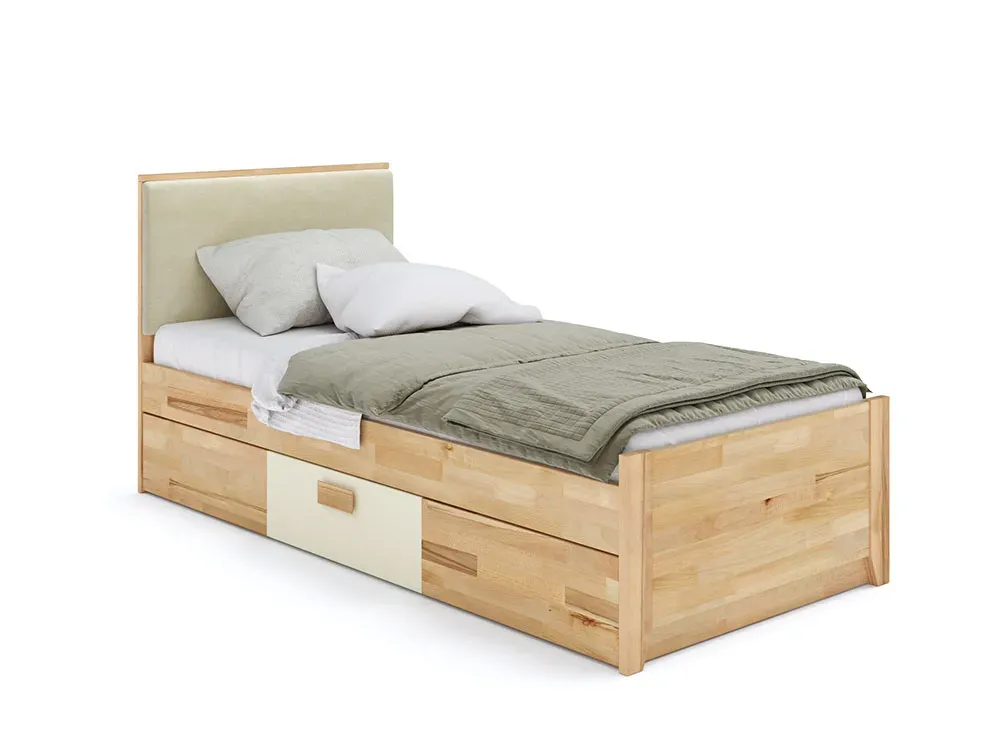 Ліжко підліткове Rainbow з шухлядою натурального кольору (шухляда натуральний/айворі), колір тканини - айворі (загальний вигляд)
