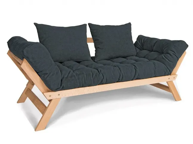 Диван-футон розкладний Allegro натурального кольору, матеріал - бук цільний, колір тканини - графітовий (загальний вигляд)