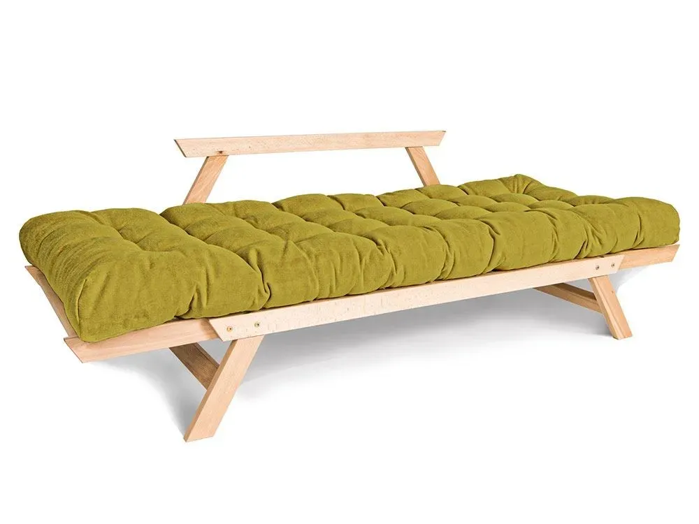 Диван-футон розкладний Allegro натурального кольору, матеріал - бук цільний, колір тканини - зелений (загальний вигляд)