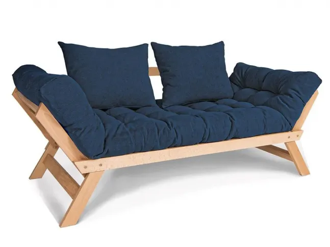 Диван-футон розкладний Allegro натурального кольору, матеріал - бук цільний, колір тканини - синій (загальний вигляд)