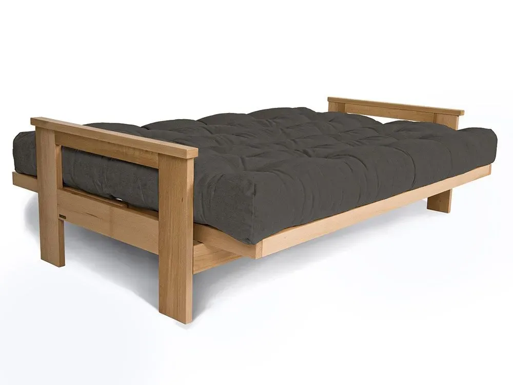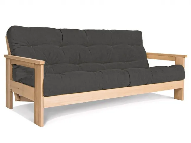 Диван-футон розкладний MEXICO натурального кольору, матеріал - бук цільний, колір тканини - попільний (загальний вигляд)