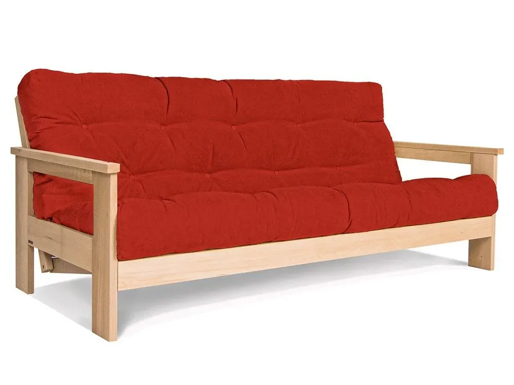 Диван-футон розкладний MEXICO натурального кольору, матеріал - бук цільний, колір тканини - червоний (загальний вигляд)