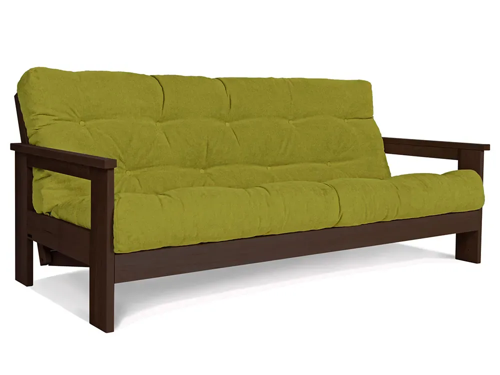 Диван-футон розкладний MEXICO кольору венге лак, матеріал - бук цільний, колір тканини - зелений (загальний вигляд)
