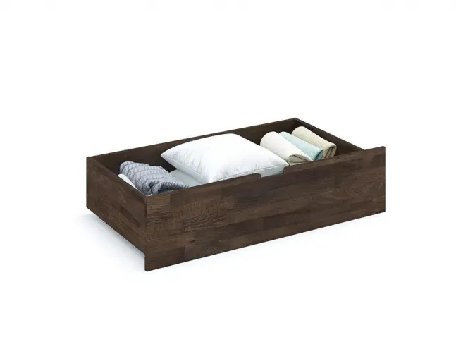 Шухляда виконана із надійного матеріалу - деревини бука. Дно виконане із ДВП. Висота шухляди є фіксованою становить 240 міліметрів. Ширину шухляди покупець може обрати сам: 990 або ж 1300 мм. Шухляда надзвичайно містка, оскільки має глибину в 550 мм. Тому, сміливо можете зберігати в ній постільну білизну, рушники, сезонний одяг чи, навіть, взуття.