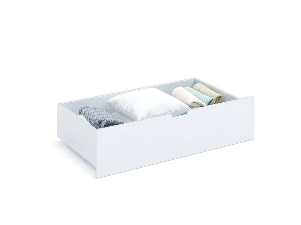 Шухляда під ліжко Еко ширина 990, білого кольору, покриття -лак, матеріал - бук зрощений (загальний вигляд)