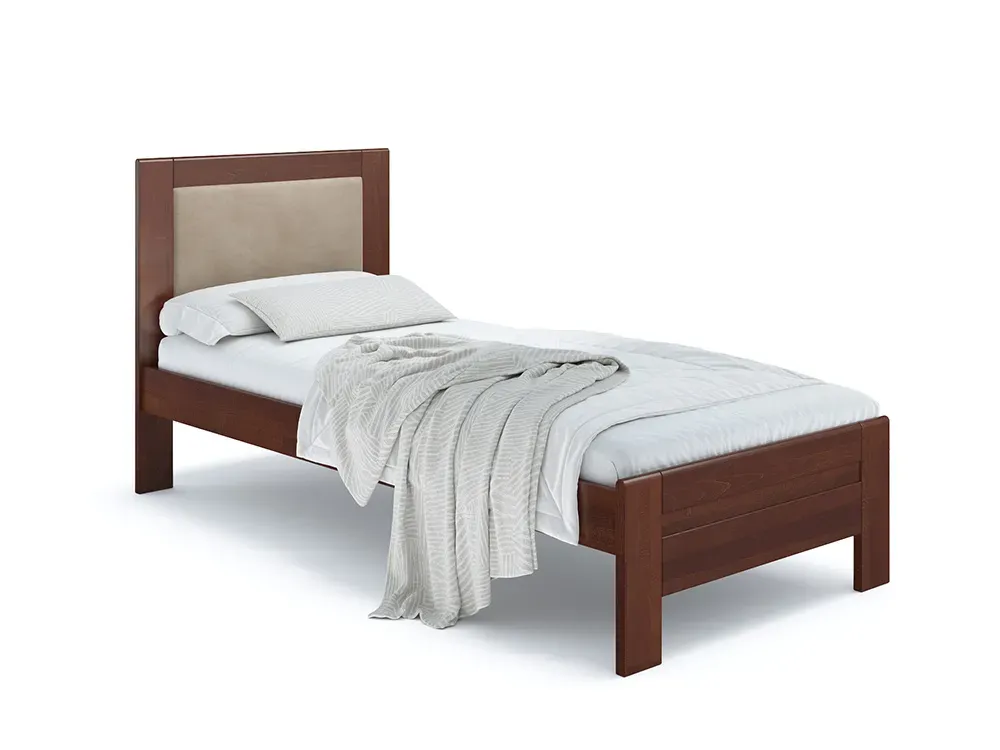 Ліжко Люкс Софт 90 х 200 кольору горіх лак, колір тканини - кремовий, матеріал - бук (загальний вигляд фон білий)