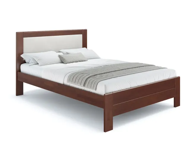 Ліжко Люкс Софт 140 х 200 кольору горіх лак, колір тканини - молочний, матеріал - бук (загальний вигляд фон білий)