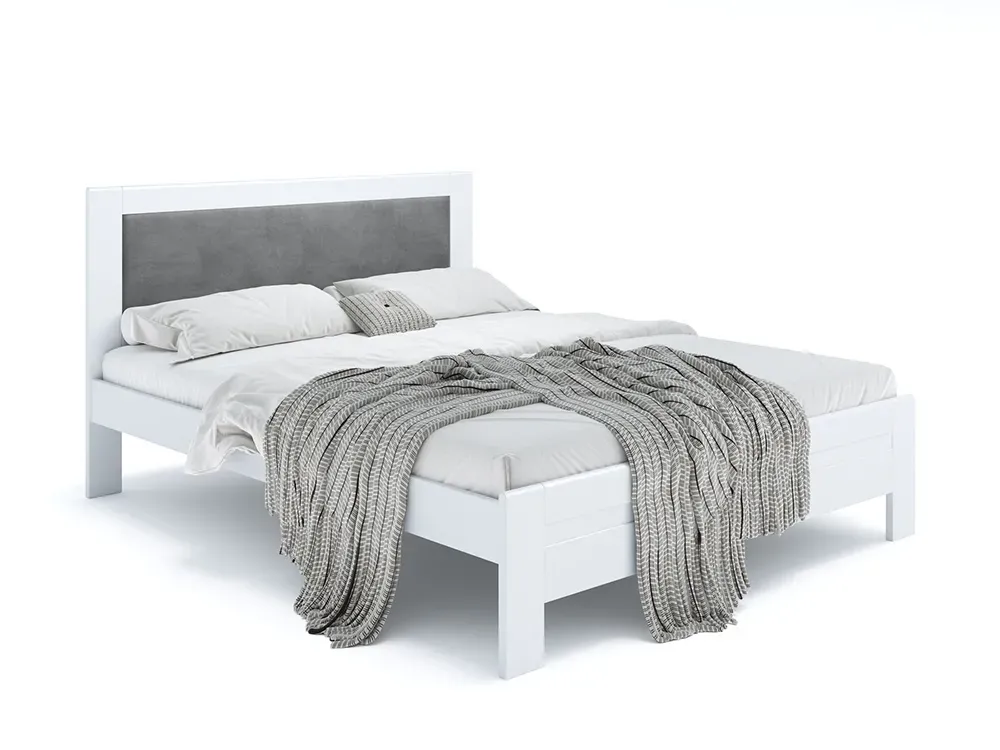 Ліжко Люкс Софт 160 х 200 білого кольору, колір тканини - платиновий, матеріал - бук (загальний вигляд фон білий)