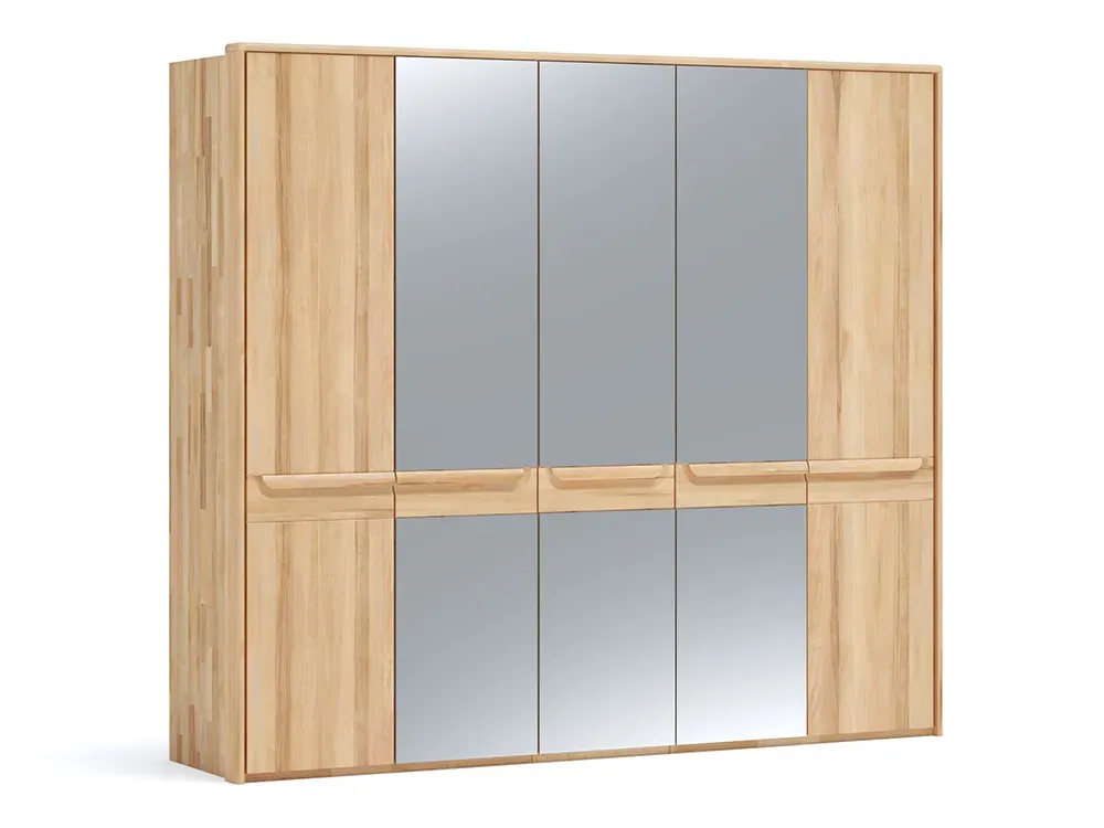 Шафа Глорія 5-дверна натурального кольору, матеріал зрощений/цільний бук, три середні дверки дзеркало з паспарту