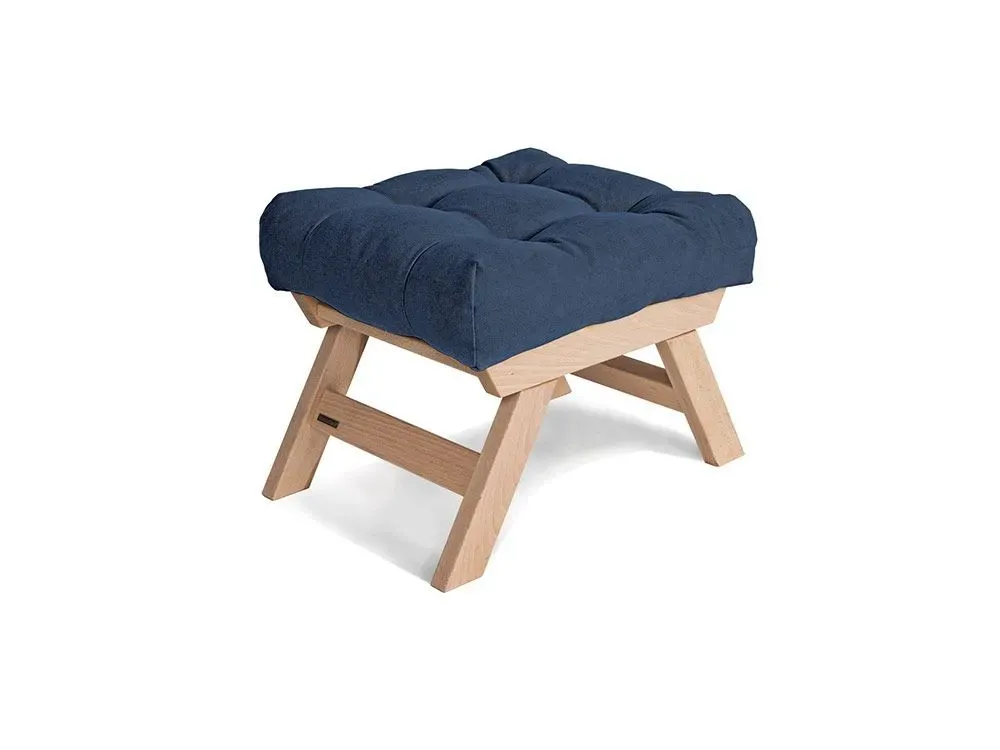 Пуф ALLEGRO натурального кольору, матеріал - цільний бук, колір тканини - синій (загальний вигляд)