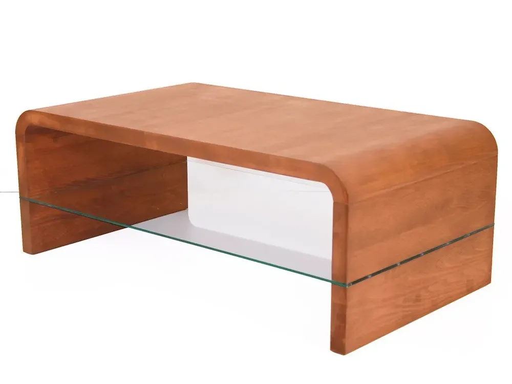 Виконаний як суцільна конструкція з масивного дерев’яного щита. Елементи гнуття, а також поєднання дерева і скла збалансовують природну твердість і крихкість матеріалів. Гармонія двох протилежностей – це також стильове рішення. Столик пасуватиме до будь-якого інтер’єру.