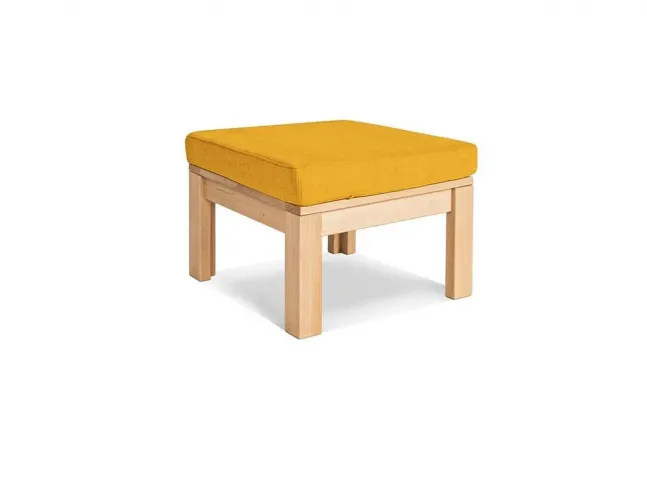 Столик-пуф журнальний MEXICO натурального кольору, матеріал - цільний бук, колір тканини - жовтий (загальний вигляд)