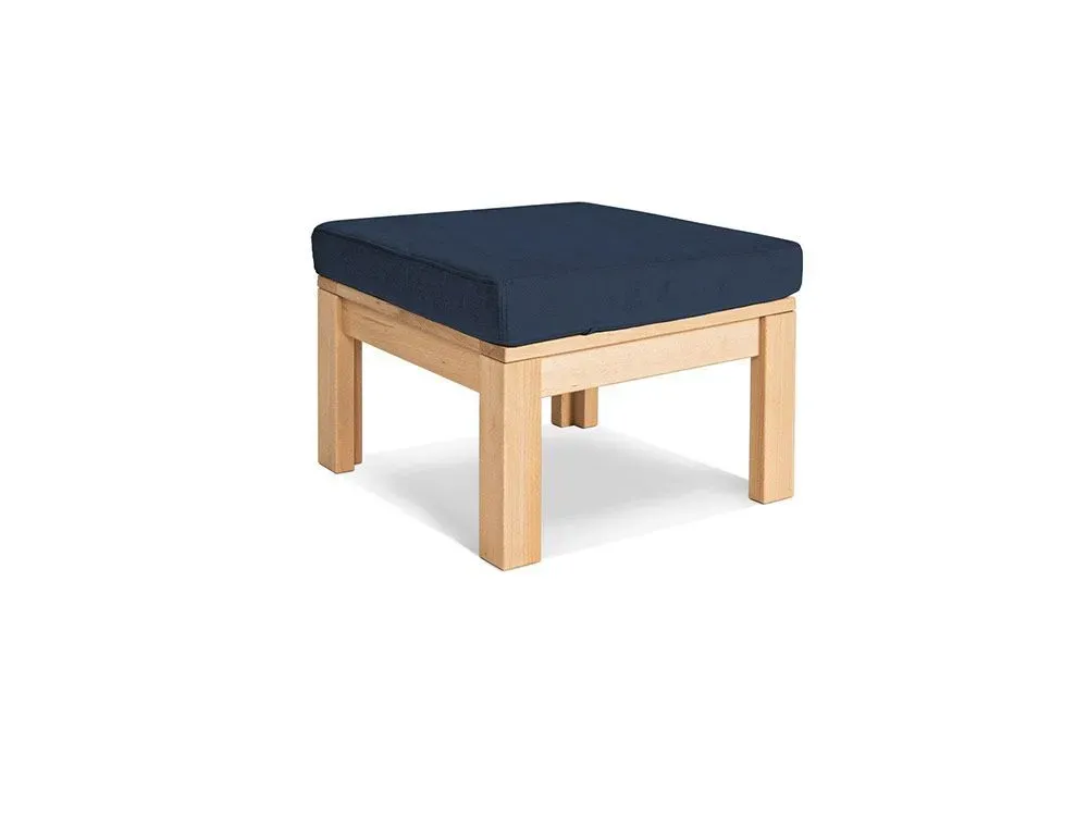 Столик-пуф журнальний MEXICO натурального кольору, матеріал - цільний бук, колір тканини - синій (загальний вигляд)