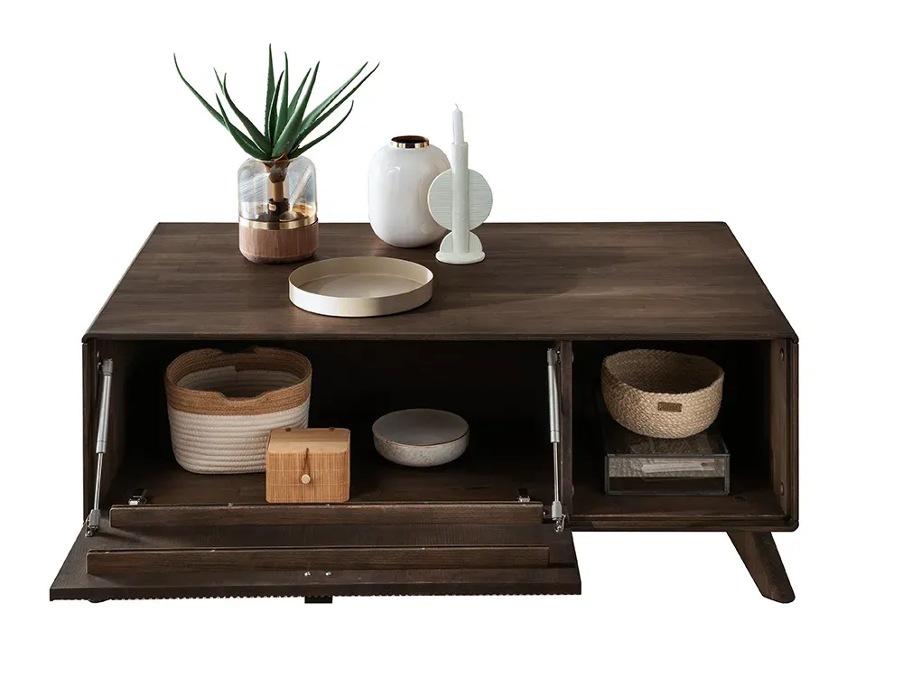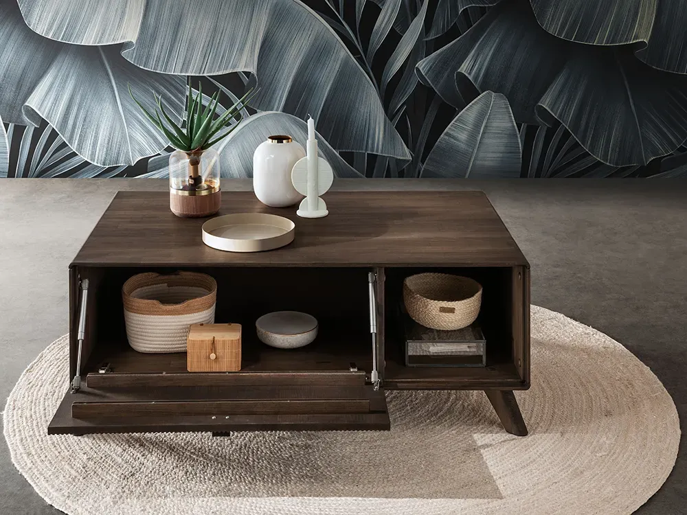 Ансамбль поєднує в собі всі ці атрибути, а окремі предмети надають кожній кімнаті домашню та стильну атмосферу. Завдяки ефектному та унікальному оздобленню деревини, досягається оригінальність, а зручність використання забезпечує практичність. Отже, якщо ви шукаєте позачасові меблі для вітальні чи їдальні з великою кількістю місця для зберігання та особливим стилем, ви знайшли саме те, що потрібно з цією серією.