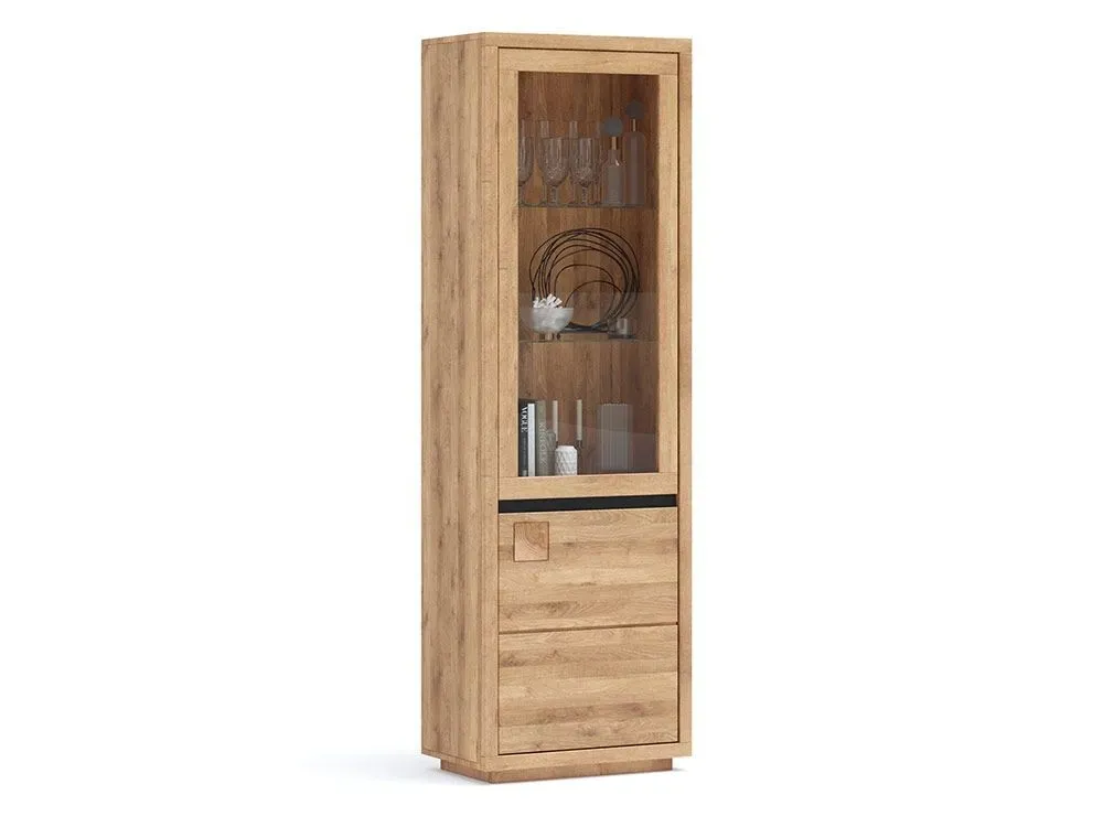 Вітрина Франкфурт Вуд I зі скляними дверцятами підтримує домашню атмосферу у вашому домі. Для неї характерний привабливий вигляд деревини, за допомогою якого вона створює природні акценти в приміщенні.